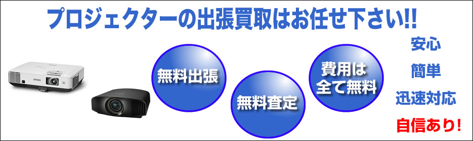 新品・中古品、国内外のメーカー問わず、どんなプロジェクターでも高価買取中です。送料・査定料が一切無料の当店の買取サービスをご利用ください。